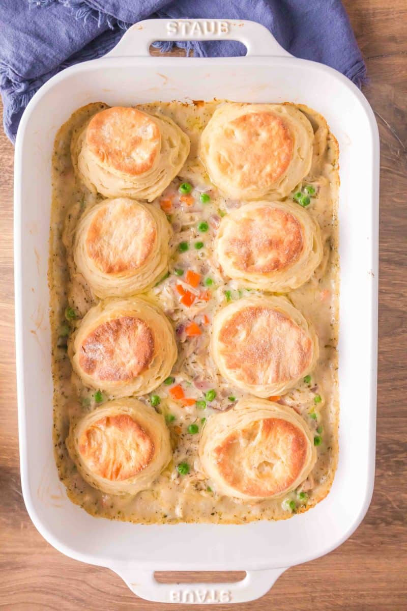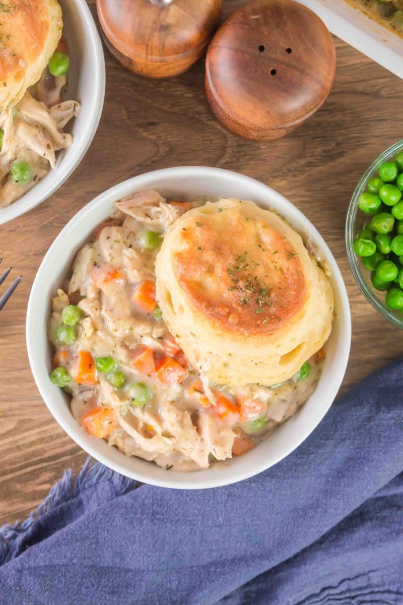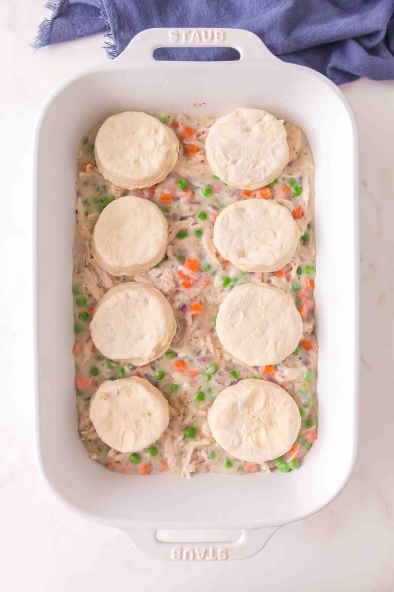If you want to freeze it, the chicken mixture freezes well for up to 3 months. The biscuits are best made fresh, but you can prepare the biscuit dough ahead of time and keep it wrapped in the refrigerator overnight.