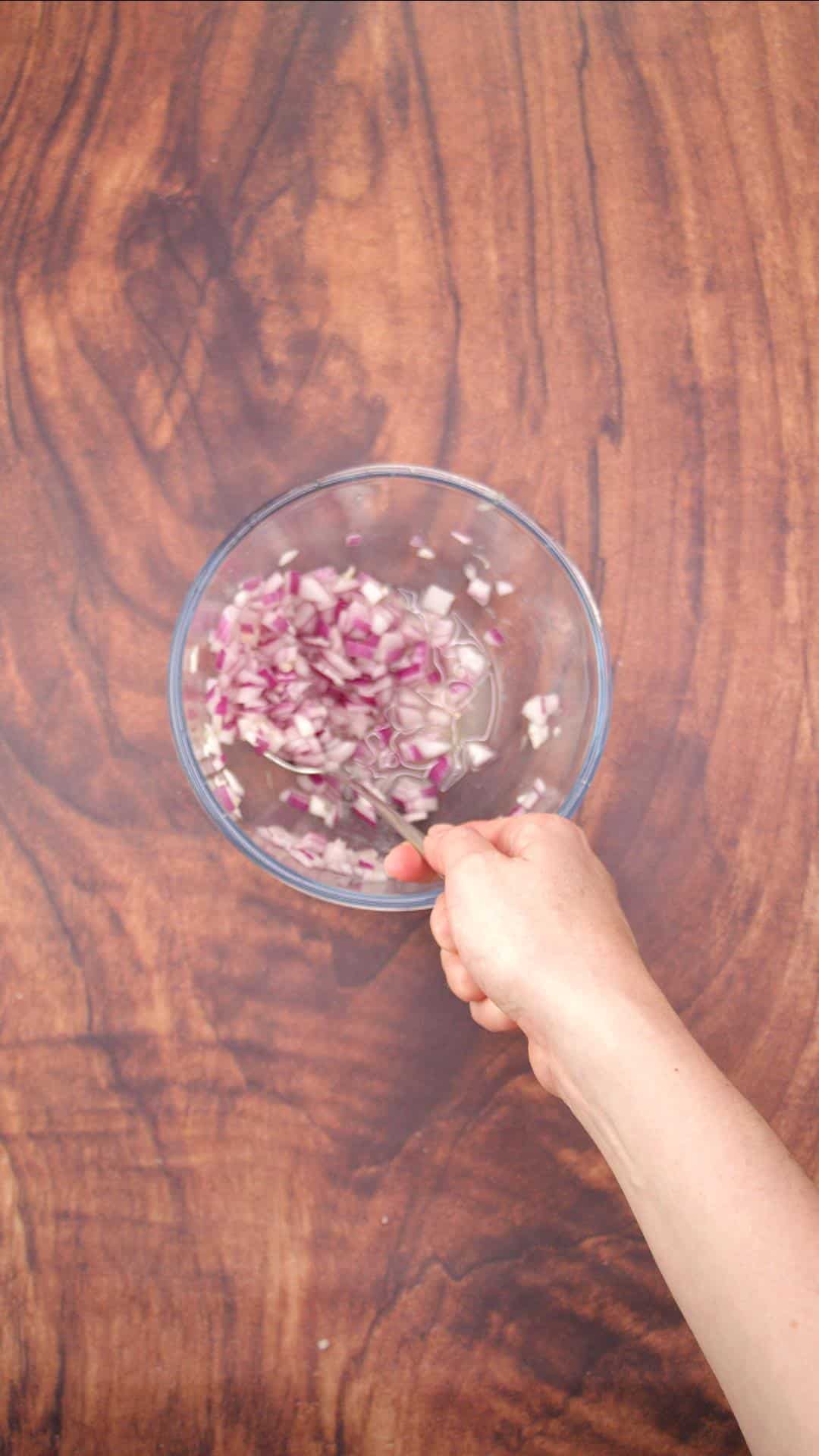 Taming the Onion: Our secret trick is mixing the diced onion with lime juice first. This takes away some of the sharp bite and makes the onion taste milder and sweeter.