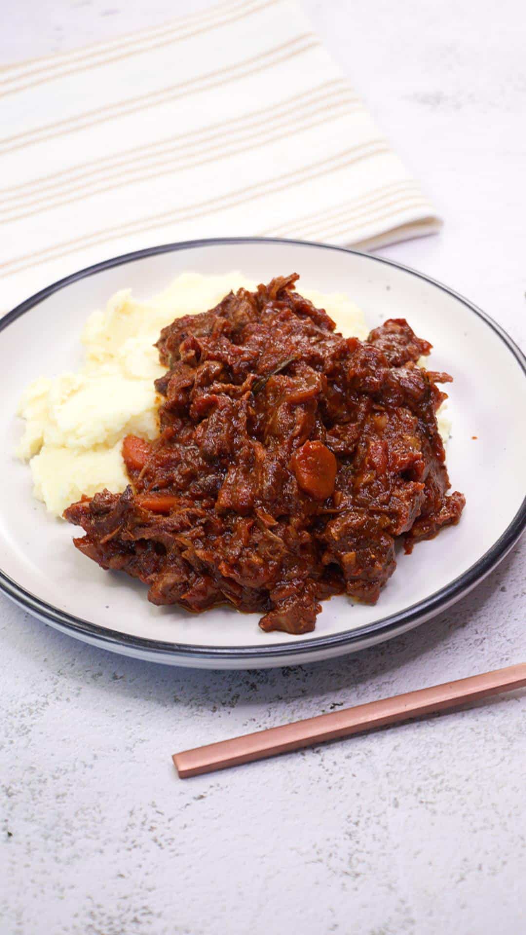 Over Mashed Potatoes: Think of it as an elevated shepherdโs pie! Creamy mashed potatoes soak up all that delicious sauce. For extra indulgence, try garlic mashed potatoes or cheesy mashed potatoes.