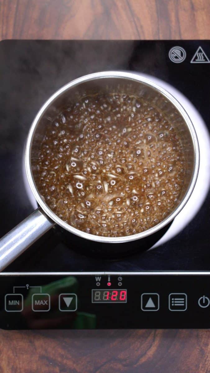Make the Syrup First: The caramel syrup needs to cool completely before mixing with bourbon, so start with this step. It takes about 30 minutes to cool down properly.