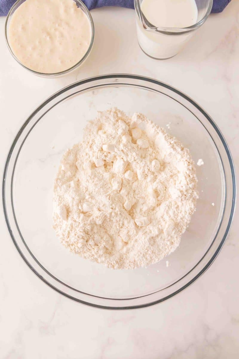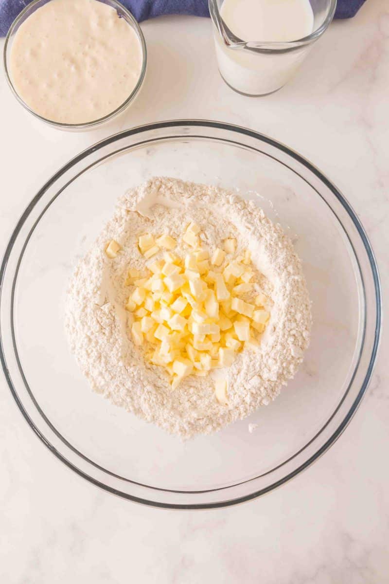 Butter: The secret to flaky biscuits is keeping your butter super cold! Cut it into pea-sized pieces and pop it back in the freezer until youโre ready to use it. You can even grate frozen butter if thatโs easier for you.