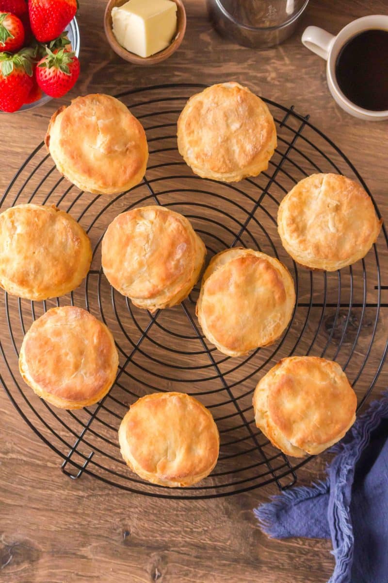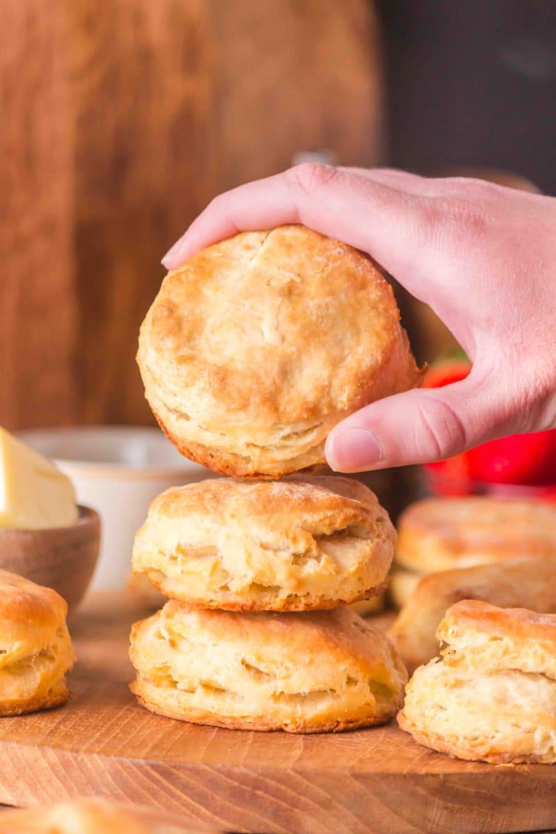 Fresh biscuits are best enjoyed within 2-3 days of baking. Store them at room temperature in an airtight container or wrapped in foil. If you brush them with butter right after baking (which I highly recommend!), theyโll stay soft but wonโt keep quite as long.