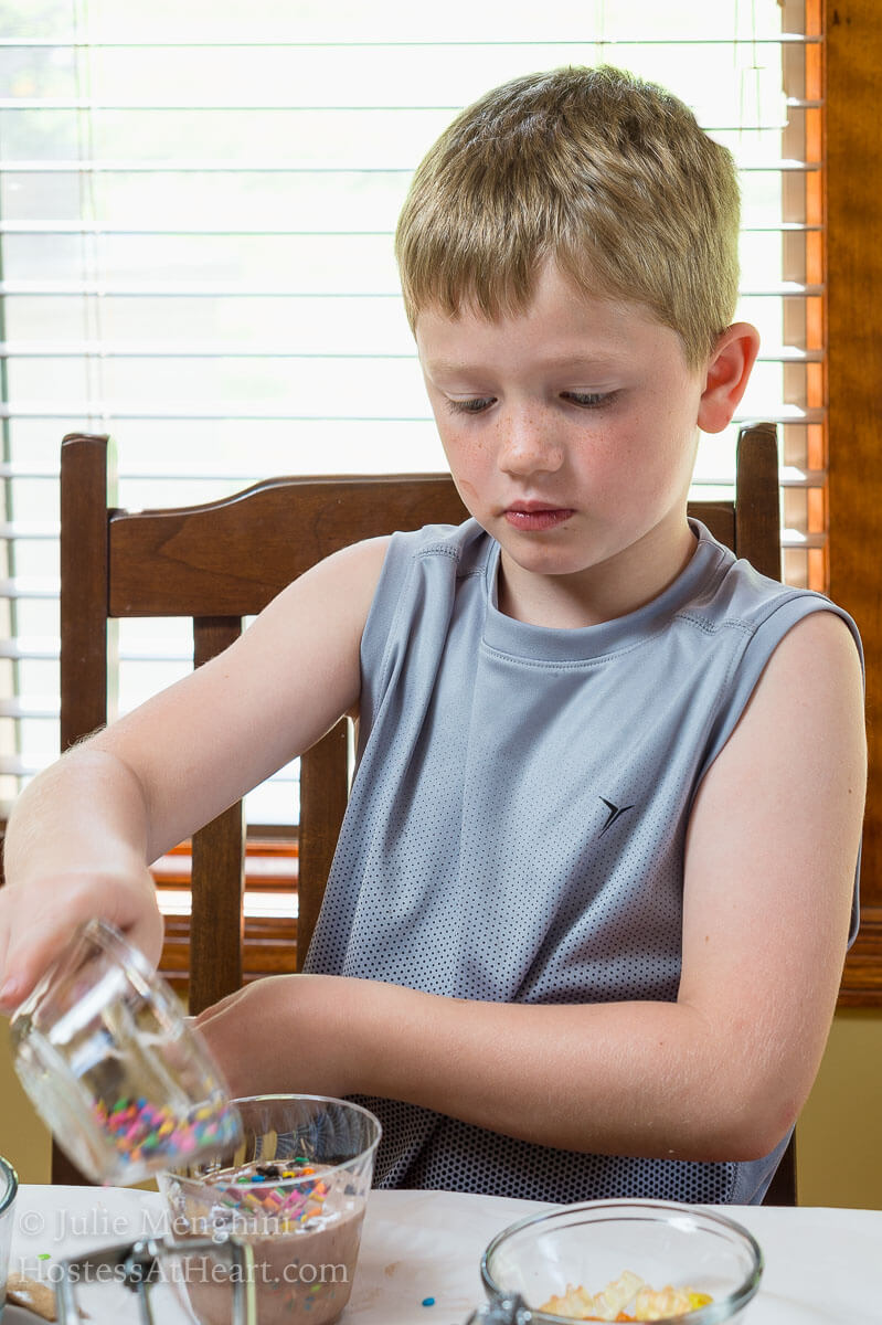 These kids were pros. William was methodical in his goody placement and ice cream scoops. Benjamin used more of the smoothie approach. He said, “it doesn’t look so good on the outside but it’s good on the inside”. I agreed.