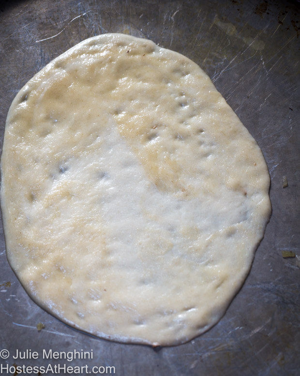 The dough is very easy to make. It is best to let it sit for a couple of hours, but you can do it earlier in the day or a day in advance.